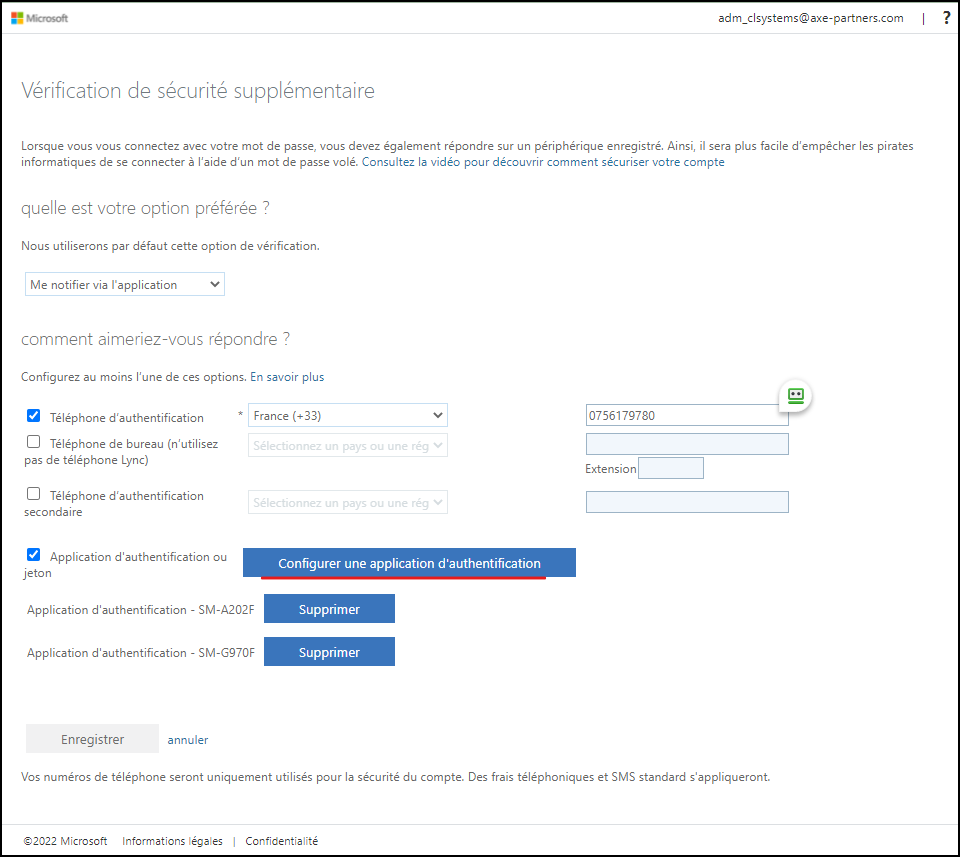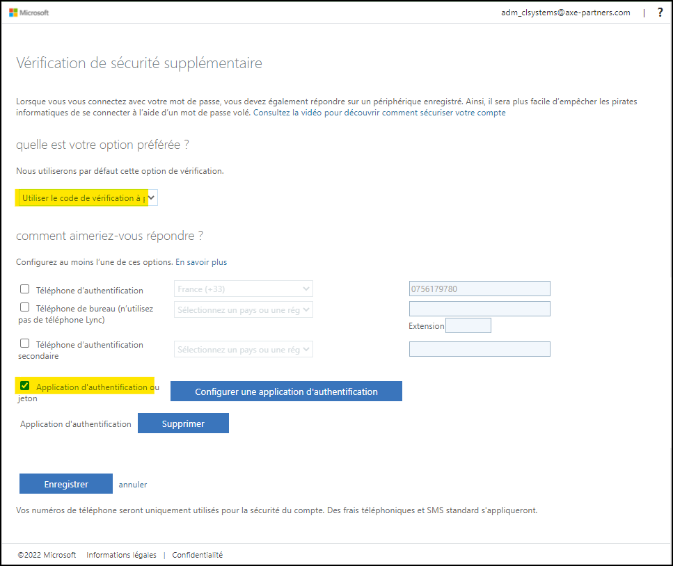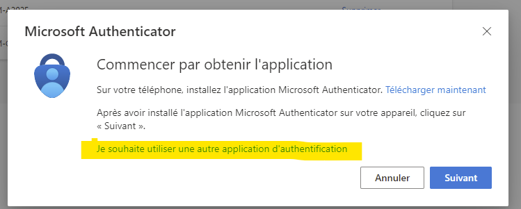 Vérifier que l'application d'Authentification est le seul MFA disponible.